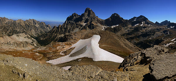 Tetons Panorama from the summit of Table Mountain. Table Mountain is located in the Teton Range in the U.S. state of Wyoming. The peak is on the... more