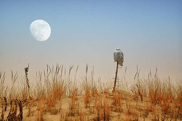 Wonderful photograph of a Snowy Owl with a rising moon in the sky, with great perspective, natural habitat and composition, Raymond! F/L/Voted!